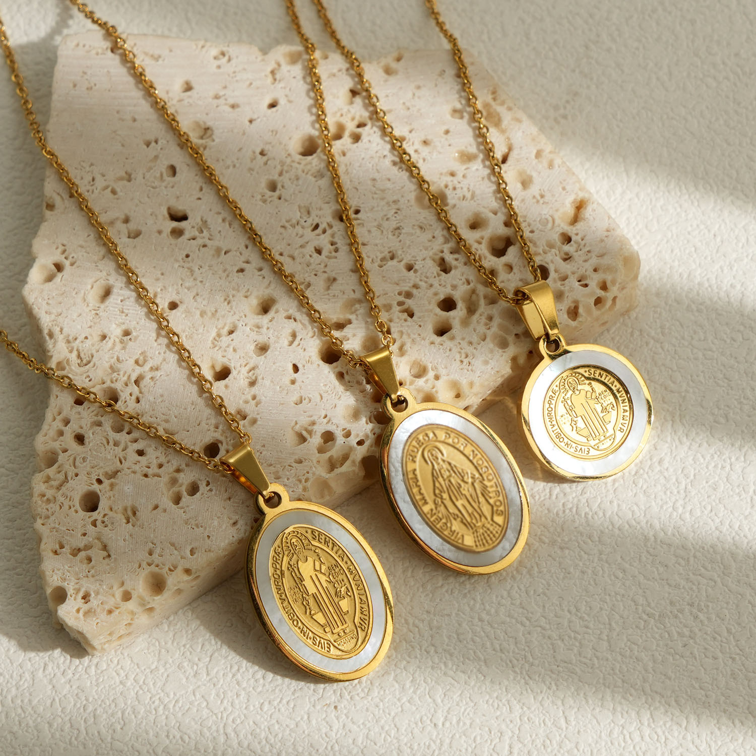 European and American religion 18K gold stainless steel cross shell pendant non-fading titanium steel priest Saint Benedict necklace wholesale