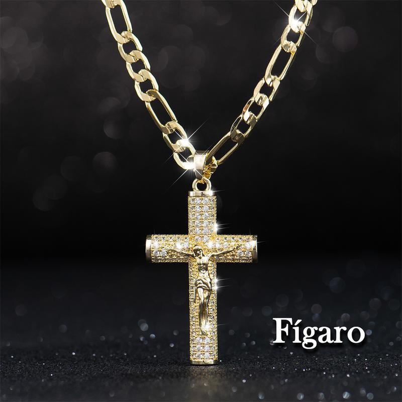 Cross-Border Popular Zircon Large Cross Religious Jewelry Cuban Chain Copper 14K Gold Thickened Necklace in Stock for Immediate Delivery