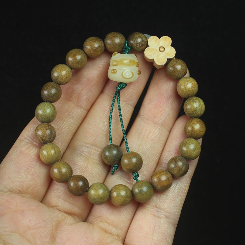 Green sandalwood old beads 10mm bracelet flower ladies Mori DIY beads rosary jewelry wholesale