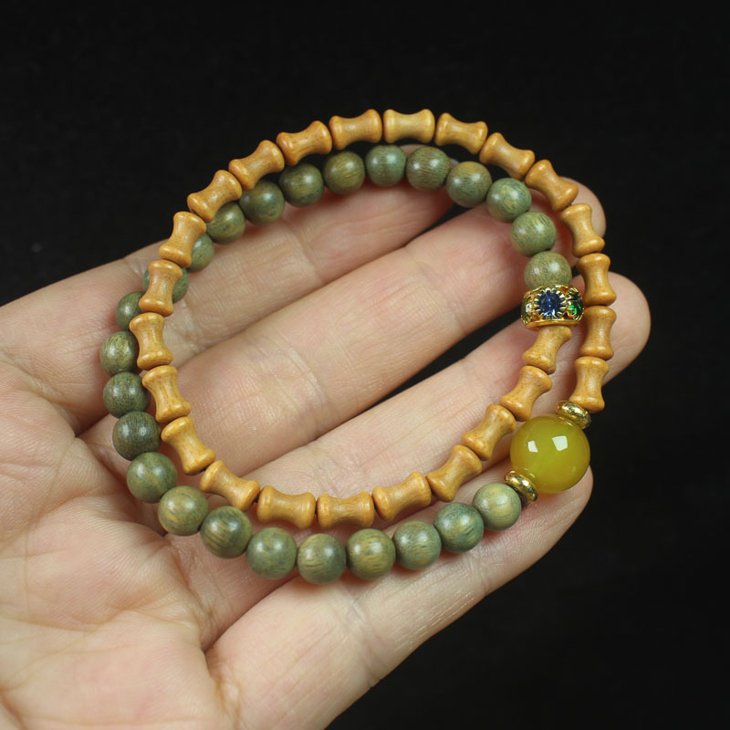 Green sandalwood 6mm sandalwood bamboo double circle bracelet men's and women's national style beads rosary jewelry wholesale