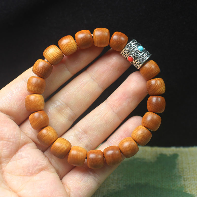 Aging Material Cedar Wood Bracelet Pieces Beads Men's Bracelet Red Oil Old Material Buddha Beads Wooden Wen Play Jewelry Couple