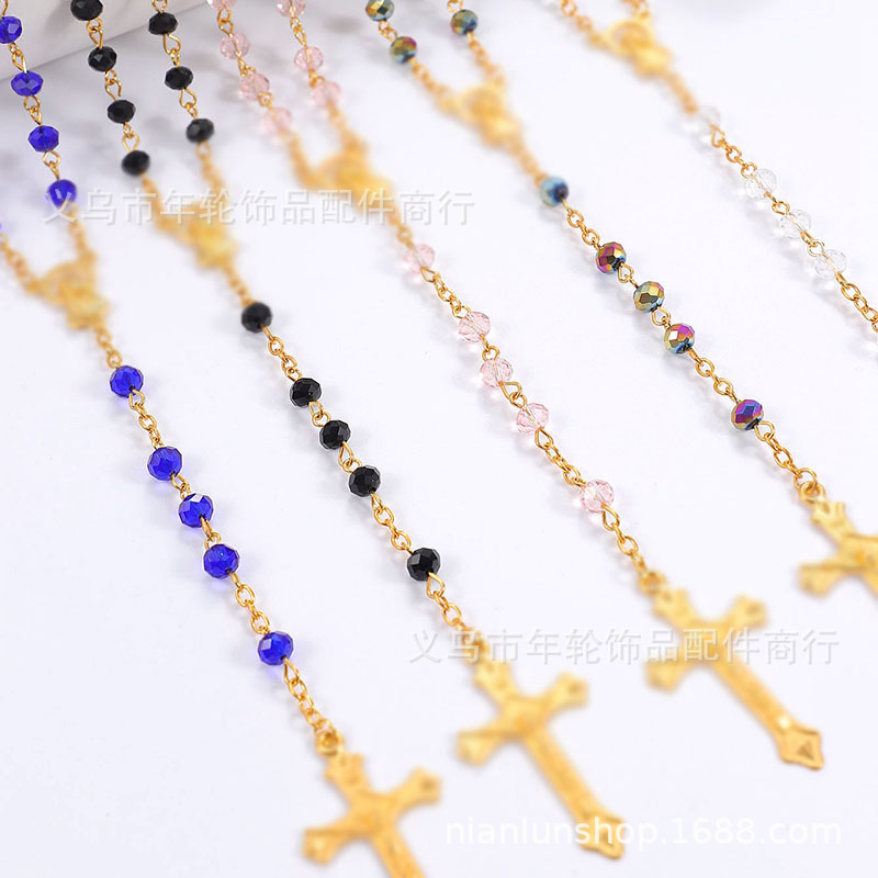 Hot-Selling 59 Crystal Colored Beads Religious Cross Necklace Virgin Mary Prayer Medal Pendant Necklace