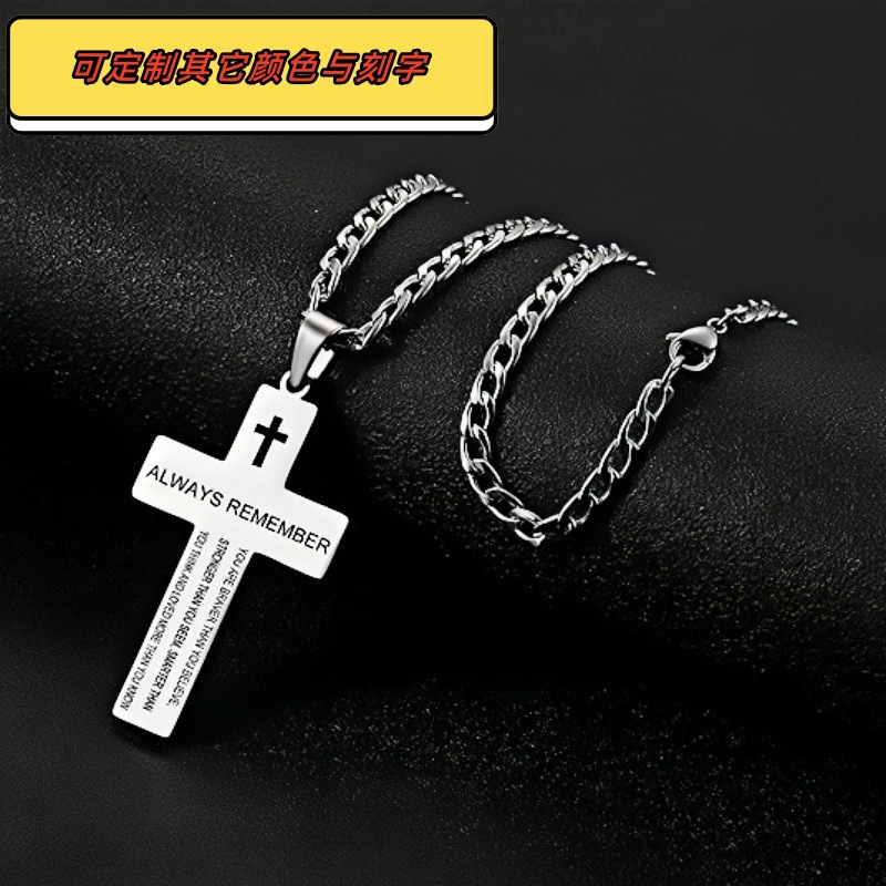 European and American Cross-Border Popular Jewelry Simple Style Bible Stainless Steel Cross Pendant Necklace Religious Gift Jewelry
