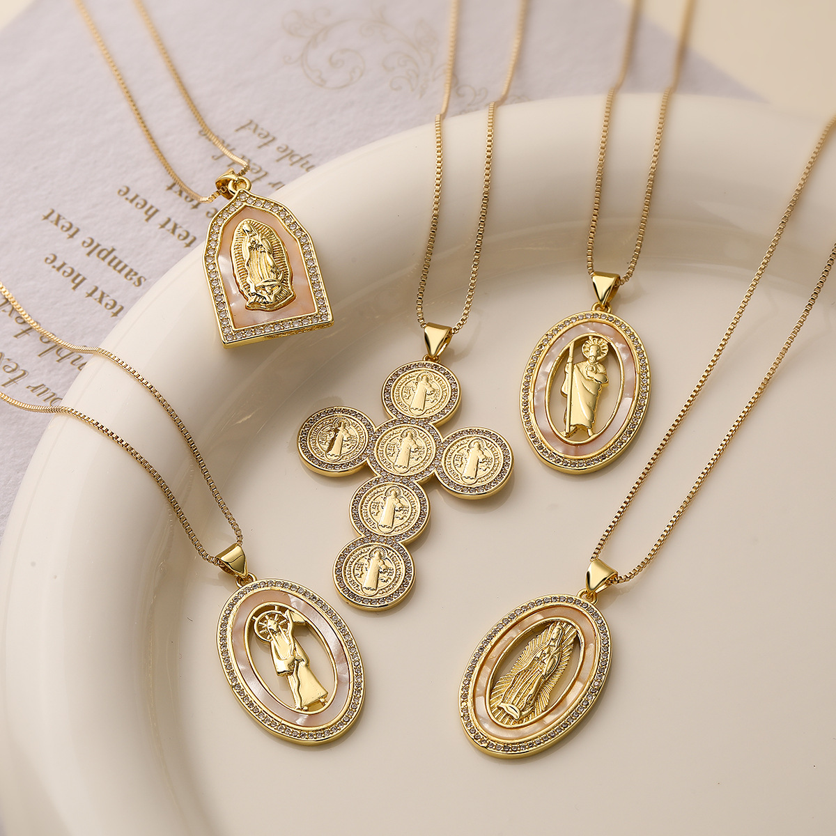 Aogu cross-border copper gold plated zircon Virgin pendant necklace female European and American INS niche personality religious necklace New