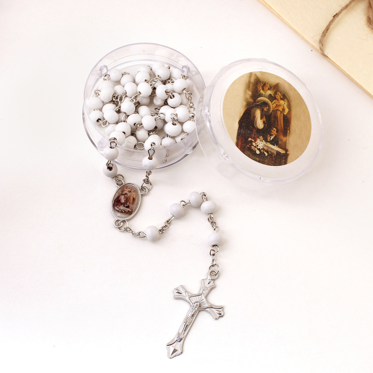 Etsy Explosive Vintage Religious Boxed White Wooden Beads Rosary with Fragrant Cross Necklace Personality All-match Necklace