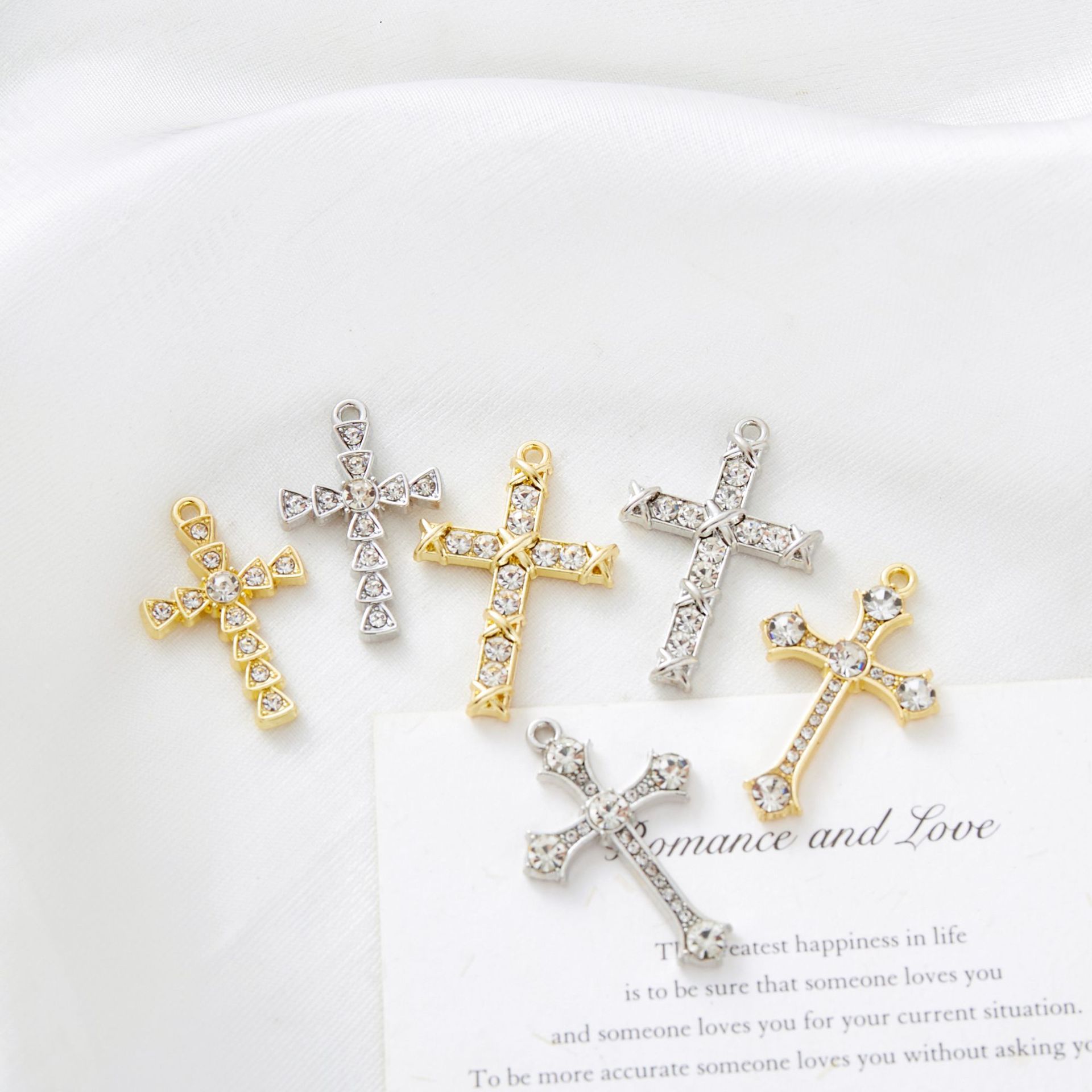 Hanging Plated Full Diamond Niche Personality Light Luxury High-End Simple Cross Religious Necklace Pendant Accessory Hanging Piece