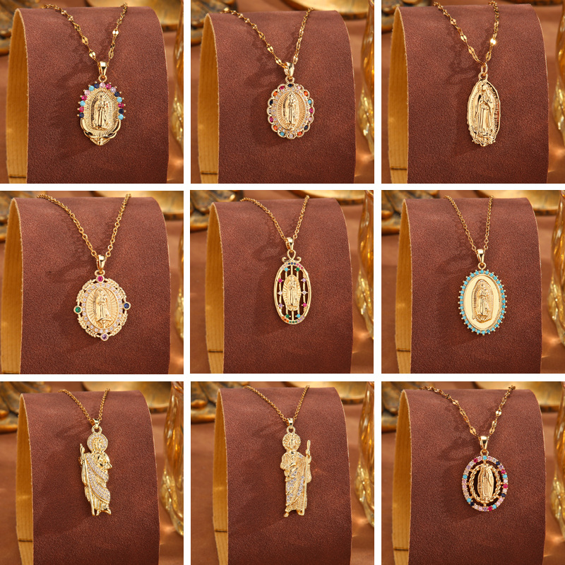 Cross-Border Amazon Metal 18K Gold Stainless Steel Religious Virgin Necklace Pendant Tag Wholesale Titanium Steel Jewelry