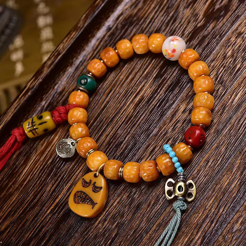 Xizang-Style Retroflow Bone Round Bead Meteorite Crater Barrel Bead Bracelet Dice Copper Phoenix Bird Accessory Buddhist Bead Bracelet