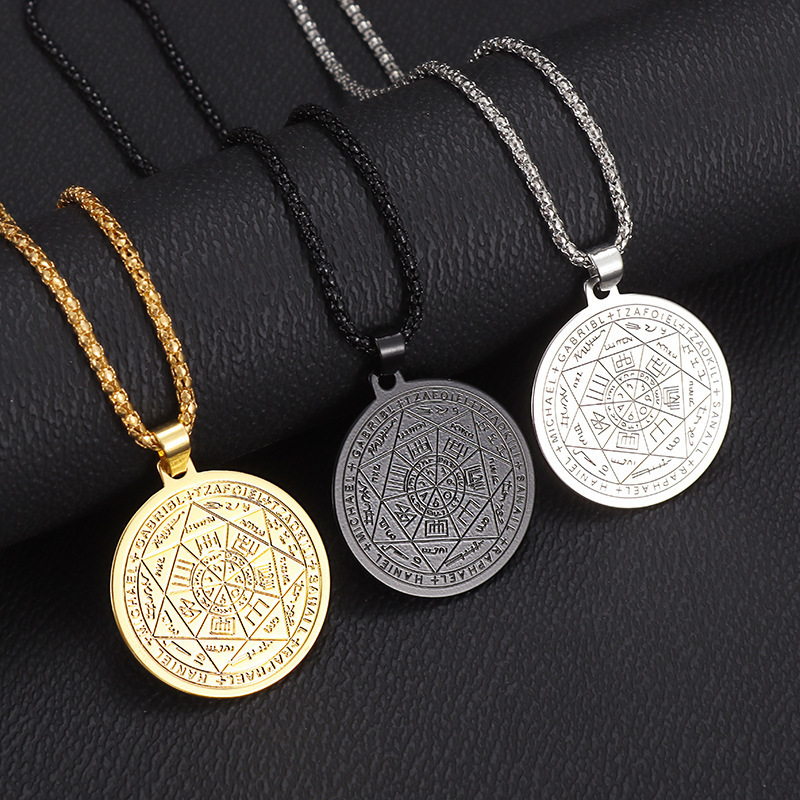 European and American Religious Scriptures Seven Angels Seal Pendant Men's New Rune Pendant Stainless Steel Round Necklace Wholesale