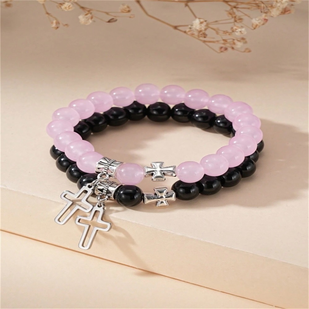 Cross-border Hollow Stainless Steel Cross Gift Bracelet Couple Colorful Beaded Bracelet Good Friend Friendship Gift