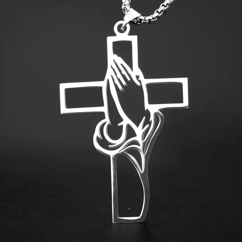 Cross-Border Stainless Steel Cross Necklace Men's Titanium Steel Jewelry New Jewelry Religious Prayer Believer Titanium Steel Necklace