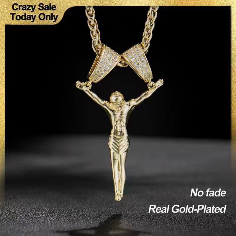 European and American Cross Oil Pressure Pendant Religious Personality Statue Clavicle Chain Zircon Copper Plated 18K Real Gold Necklace