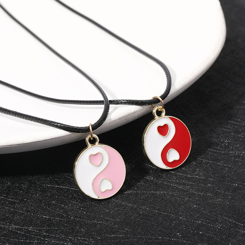 Two-color stitching alloy pendant taiji yin and yang metal dripping necklace new European and American simple round color matching necklace