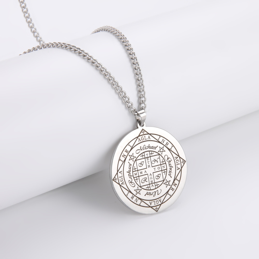 AliExpress hot sale stainless steel amulet Solomon seal wheel of fate Archangel's protection pendant necklace