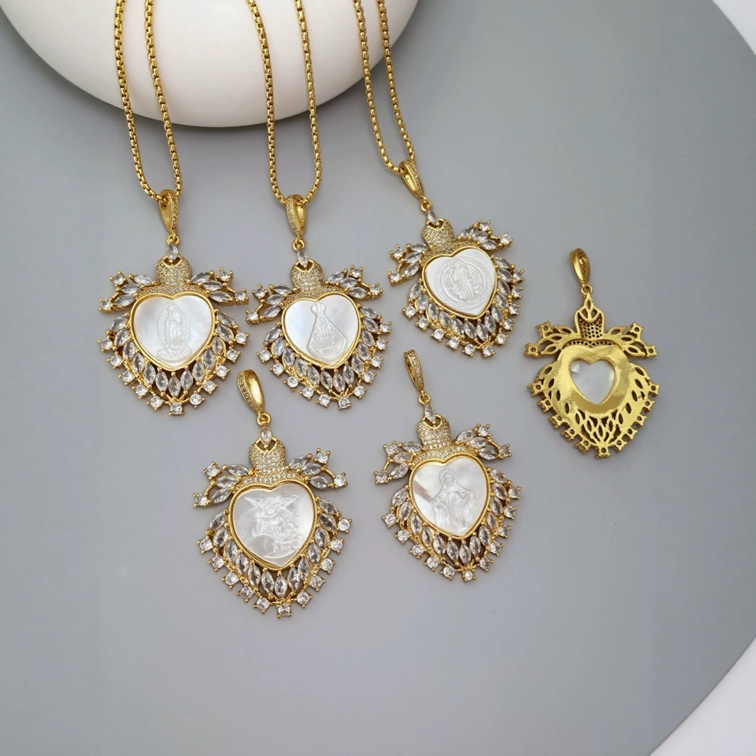 Shimi Jewelry European and American Cross-Border Copper Gold-Plated Micro-Paved Zircon Geometric Shell Virgin Carved Pendant Female Religious Necklace
