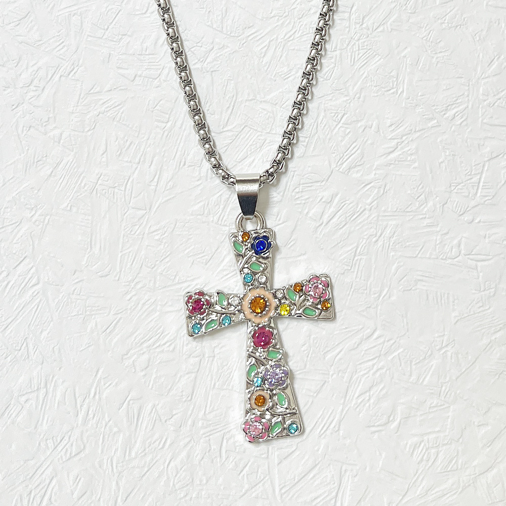 Cross-Border Jewelry Wholesale Cross Flower Necklace Pendant for Women European and American Style Small Plum Blossom Religious Jewelry Ins Style