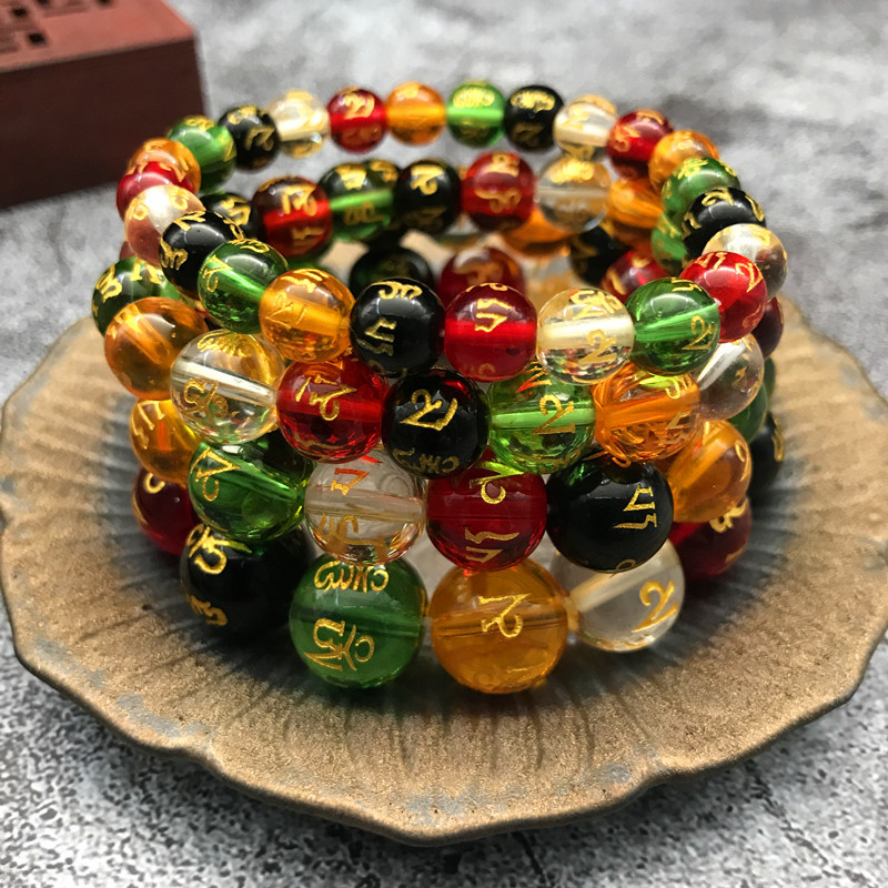 Wholesale of Colorful Gold-Stamped Six-Character Mantra Buddhist Bead Bracelets for Men and Women, Five Elements Fortune Bracelets, Jewelry, and Glass Beads