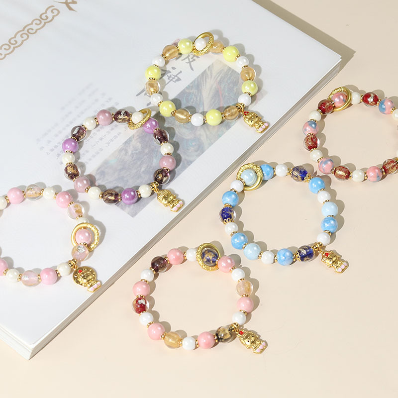 Ash Ceramic Bracelet for Women, Gold Foil, Glass, Gold-Plated, Eight-Small Buddha Tourist Attractions, Best-Selling Cultural and Entertainment Jewelry Wholesale