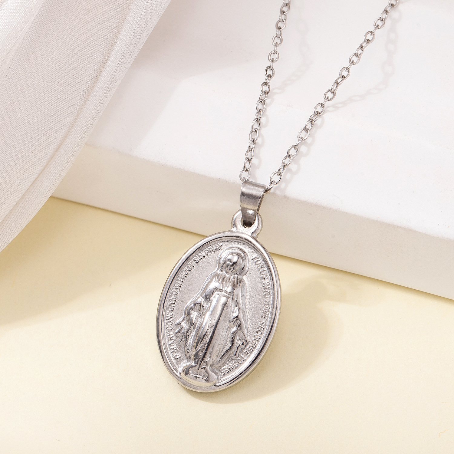 European and American explosions cross religious pendant necklace Virgin Mary pendant clavicle chain stainless steel jewelry wholesale