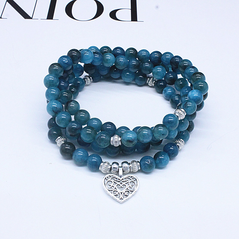 Classic natural stone apatite blue beads bracelet 108 rosary beads men and women multi-Circle Bracelet accessories in stock