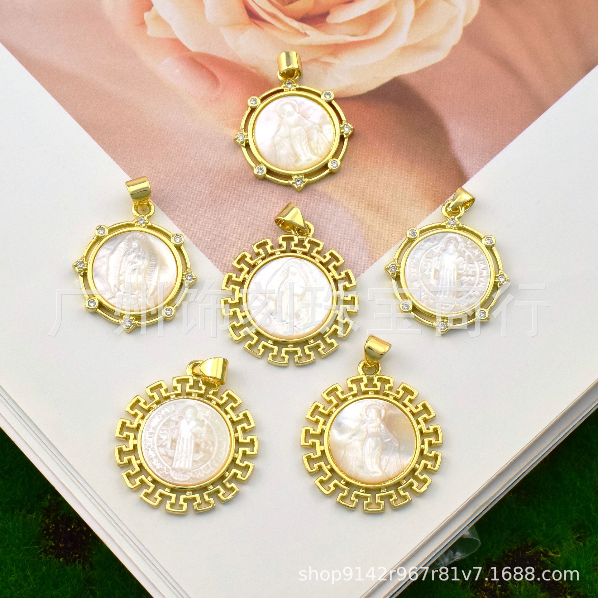 Cross-Border Religious Shell Virgin Pendant Necklace Plated with Real Gold Zircon Angel Jesus Virgin Pendant Accessories