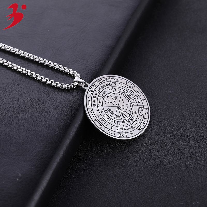 Foreign trade religious scripture seal compass tag rune pendant stainless steel round card necklace exquisite