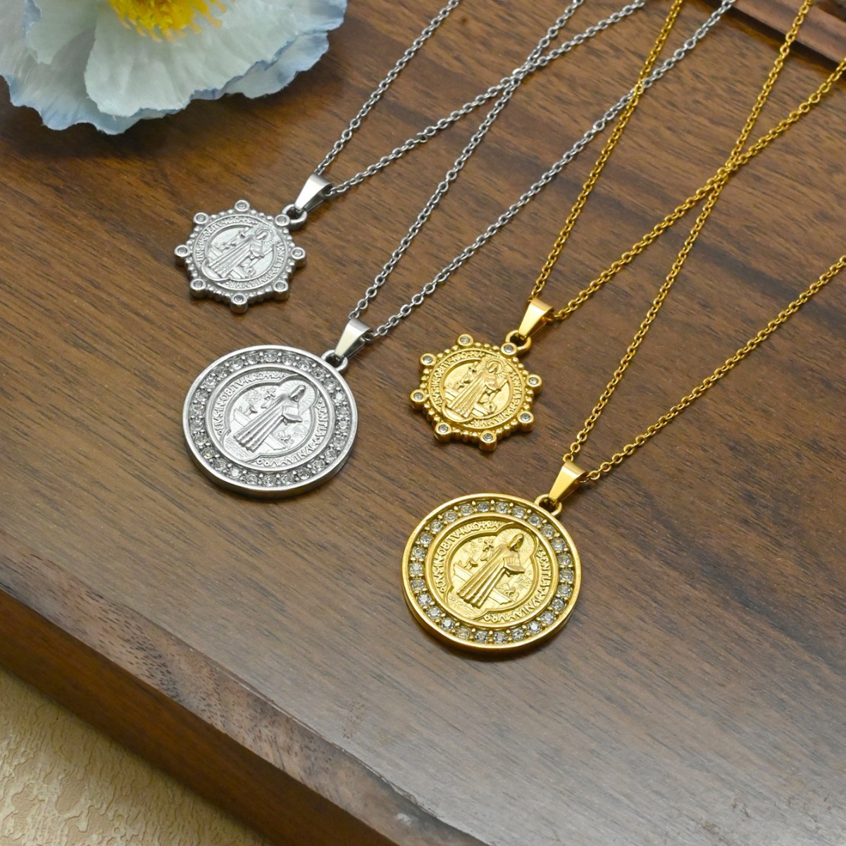European and American Fashion Cross-Border Religious Stainless Steel Micro-Paved Zircon Pendant Women's Jewelry Catholic Virgin Mary Necklace