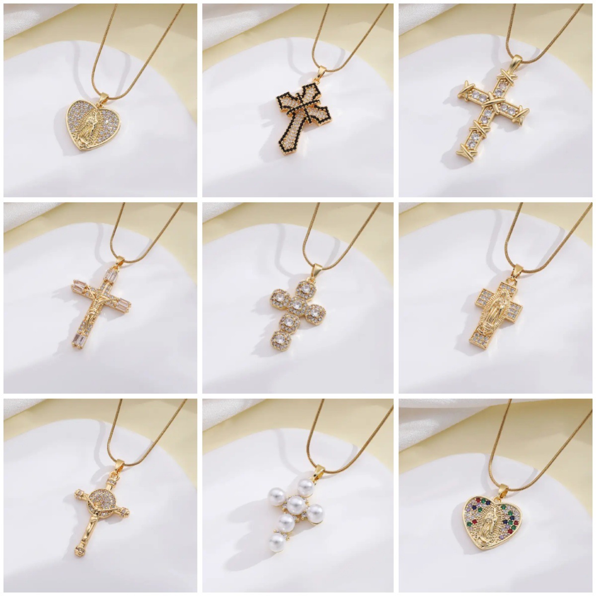 European and American Retro Sacred Religious Accessories Necklace Copper Micro Set Zircon Virgin Mary Pendant Cross Clavicle Chain