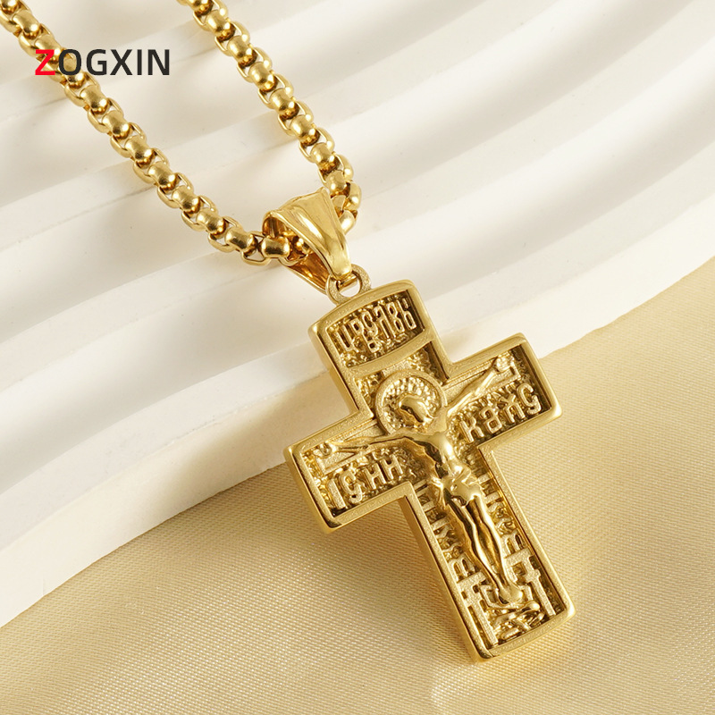Cross-border new stainless steel cross pendant female Europe and the United States 18K retro personality 3D religious priest necklace jewelry