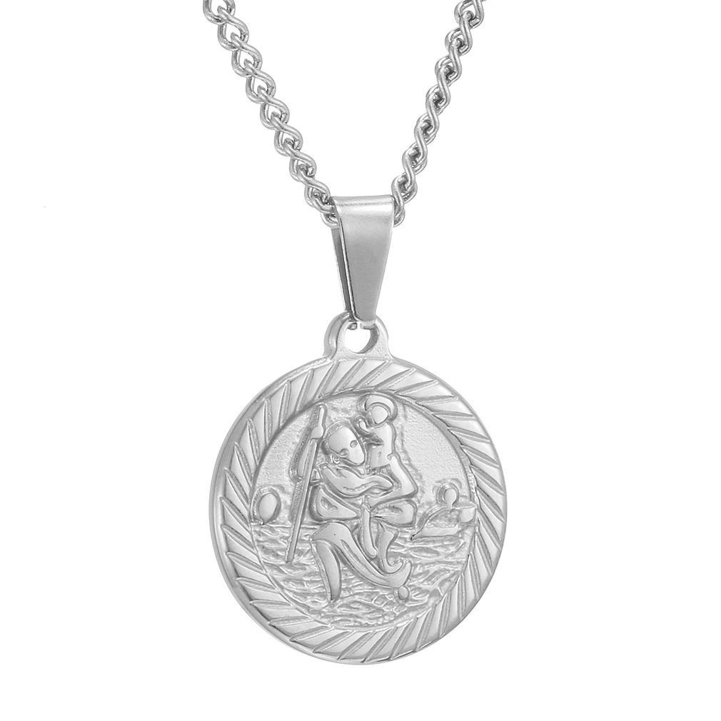 Factory direct European and American religious jewelry St. Christopher back Jesus cross the river stainless steel necklace
