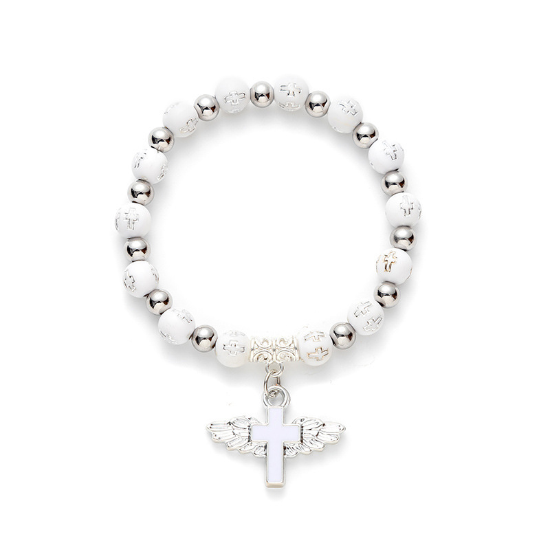 Hot-Selling New Gold-Stamped Acrylic Bead Painting Oil Cross Bracelet Angel Men's and Women's Rosary Bracelet Baptism