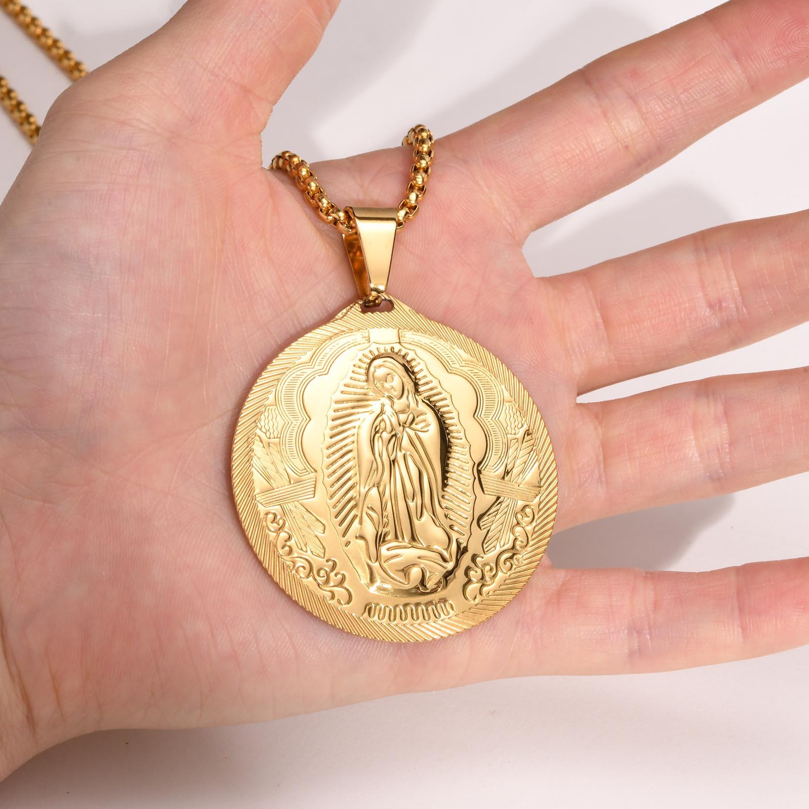 Cross-Border Hot-Selling New Retro Religious Madonna Round Tag Men's and Women's Hip-Hop Pendant Necklace