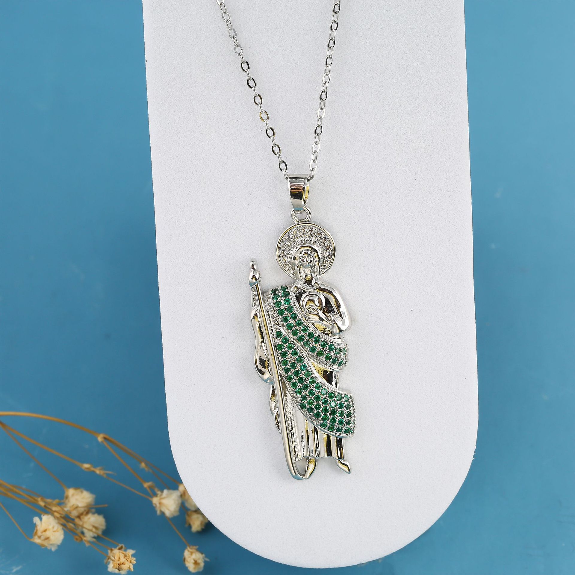 Europe and the United States cross-border new copper set zircon St. Jude religious pendant necklace men and women personality retro clavicle chain wholesale