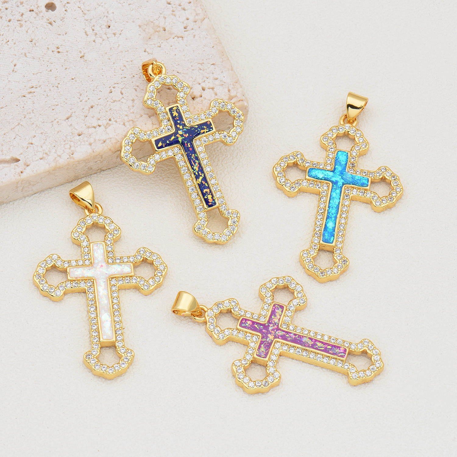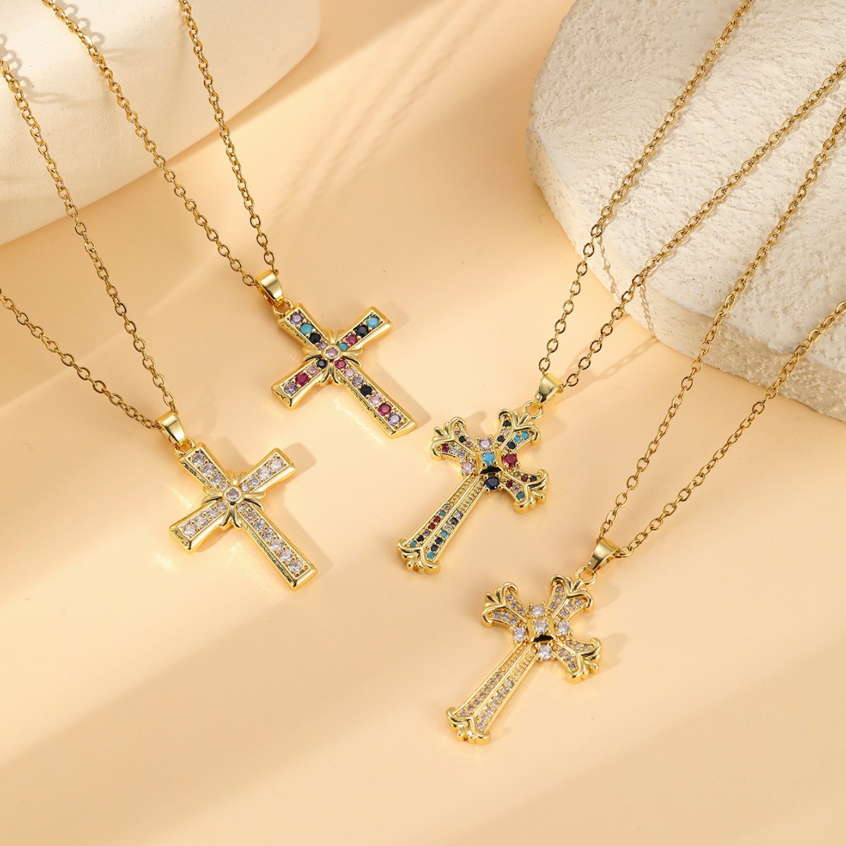 European and American Cross-Border New Religious Style Fashion Cross Copper Gold-Plated Zircon Pendant Single Pendant Necklace Women's Accessories