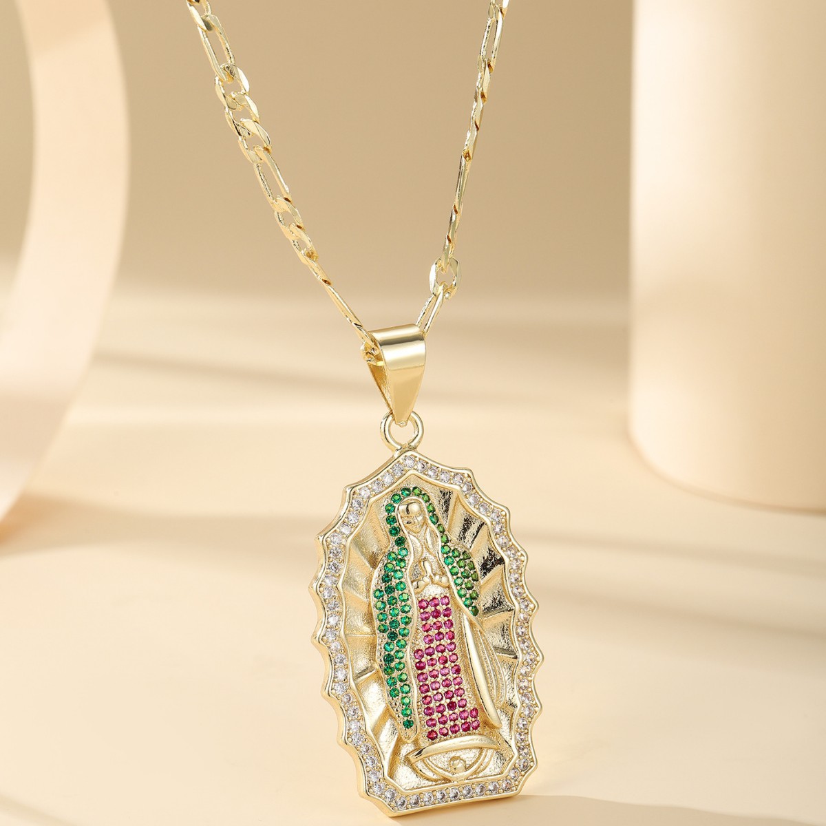 European and American Cross-Border Catholic Virgin Mary Pendant Necklace Women's Color-Inlaid Zircon Personalized Jewelry Religious Accessories