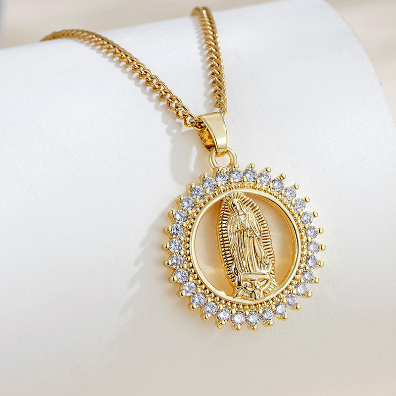 European and American Fashion Religious Copper Emblem with White Zircon Pendant Women's Jewelry Virgin Mary Necklace Versatile