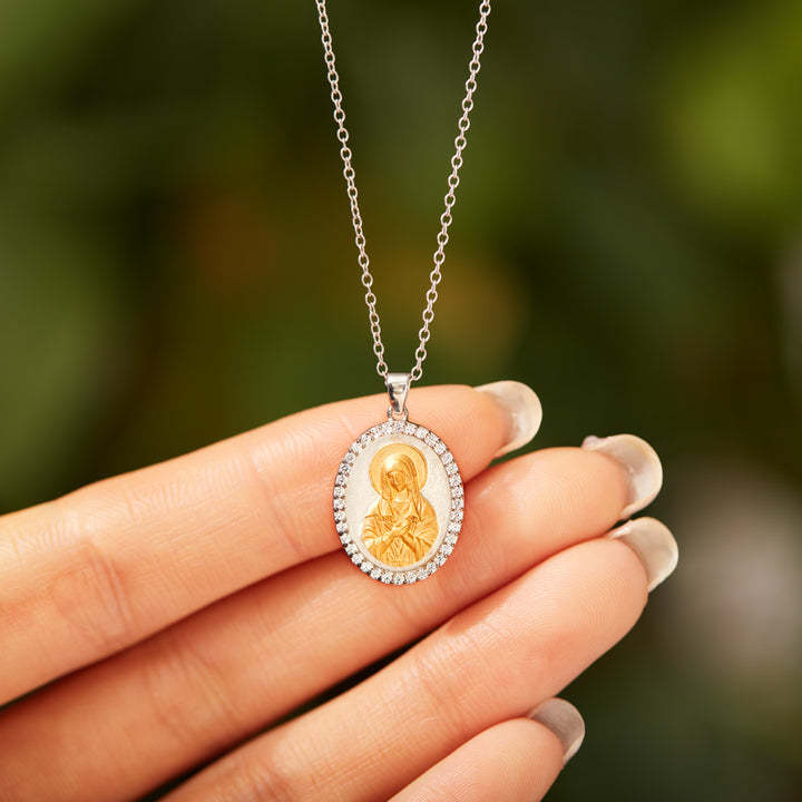 European and American High-End Pendant Necklace, Catholic Virgin Mary Accessory Necklace, Religious Copper Inlaid Zircon Pendant