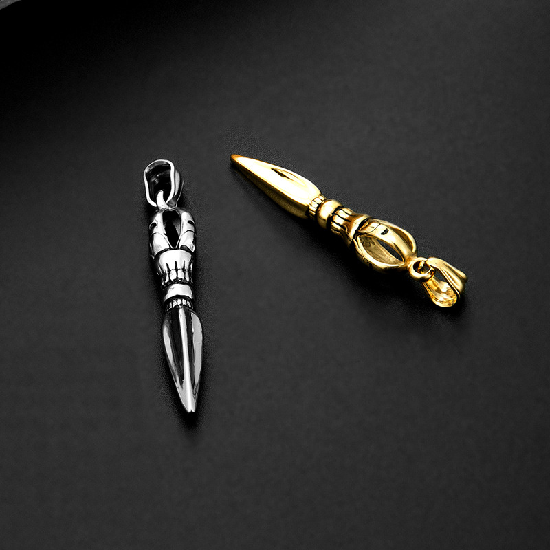 Cross-Border Manufacturer Buddhist Magic Staff Necklace Trendy Men's Fortune Dagger Titanium Steel Pendant Religious Style Jewelry Personalized Pendant