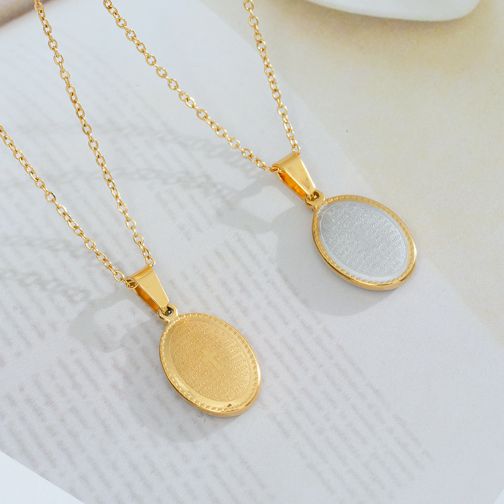 [full-body titanium steel] cross-border Amazon Europe and America stainless steel religious oval necklace pendant pendant jewelry wholesale