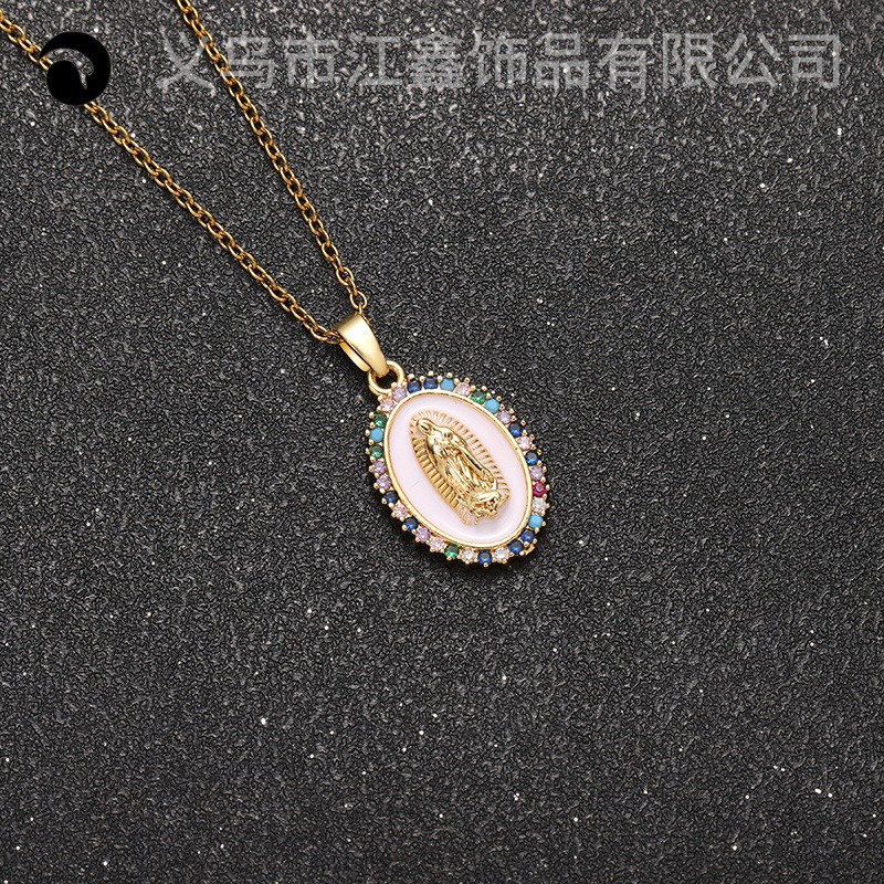 European and American Fashion Religious Copper Micro-Inlaid Zircon Pendant Women's Jewelry Catholic Virgin Mary Pendant Necklace
