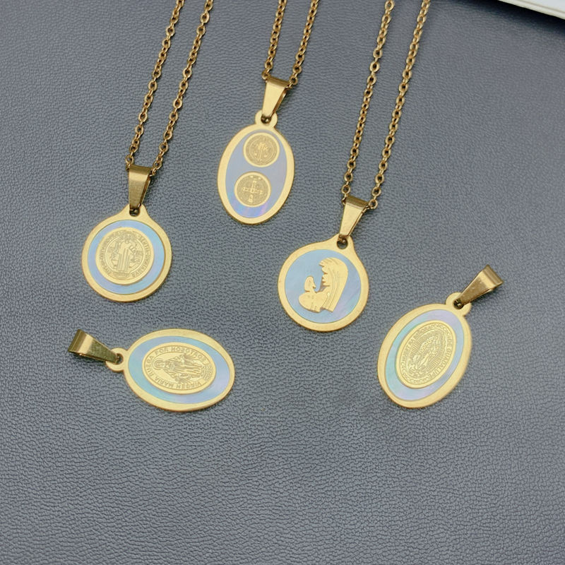 Cross-border European and American Style Stainless Steel Virgin Mary Pendant Necklace Hot Sale Guadalupe Saint Benedict Religious Jewelry