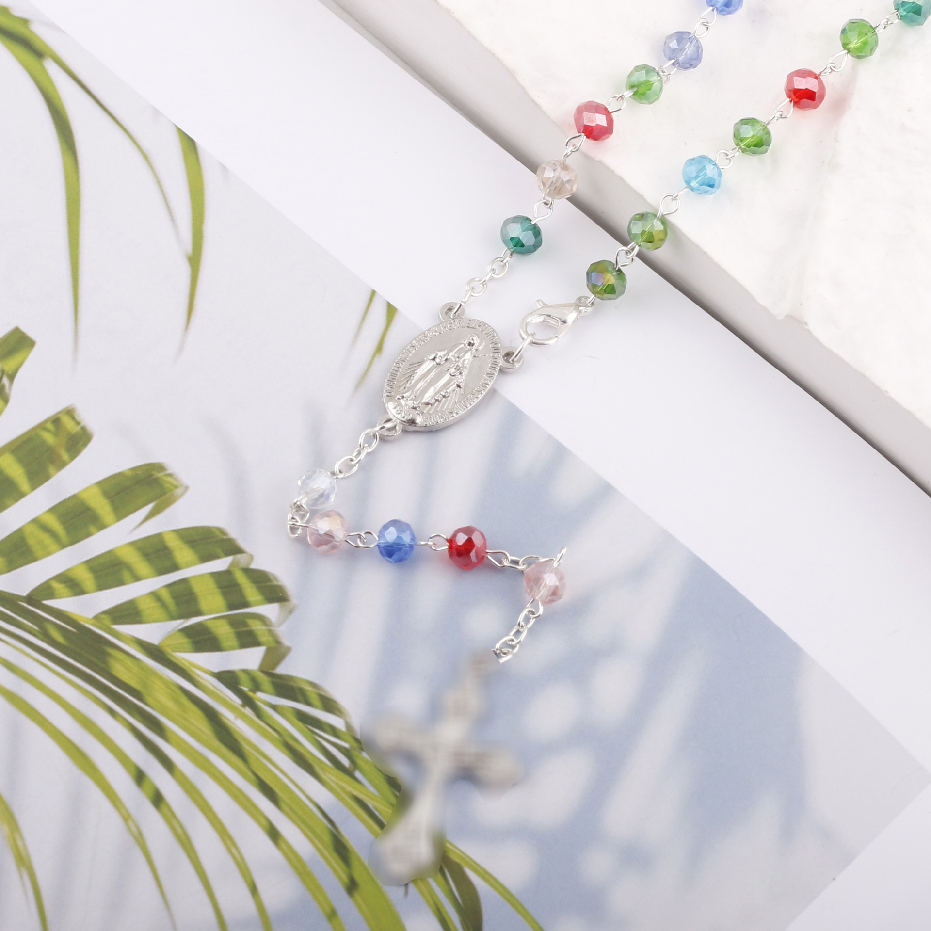New children's style cross religious multicolor crystal rosary jewelry necklace cross-border wholesale supply