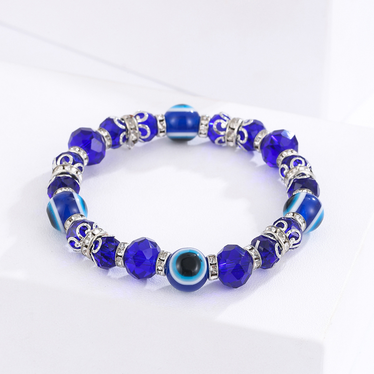 Fashion Diamond-Encrusted Devil's Eye Pendant Palm Flower Holder Crystal Beaded Bracelet Blue Eyes Beaded Elastic Bracelet