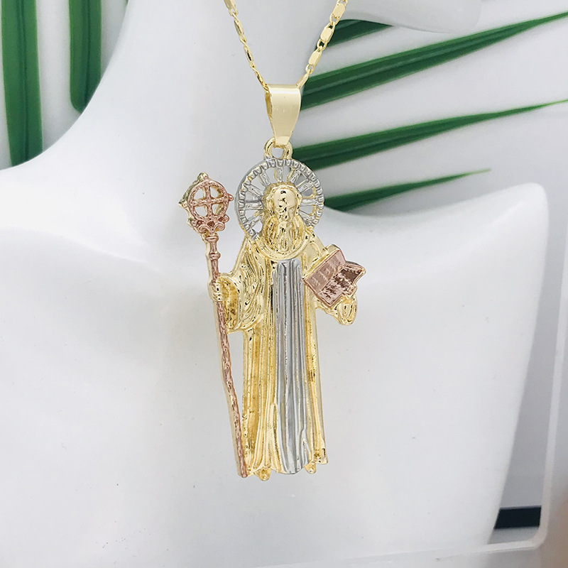 Cross-border Amazon Explosions St. Benedict St. Cyril Necklace Jewelry Three-dimensional Golden Necklace Religious Jewelry Decoration