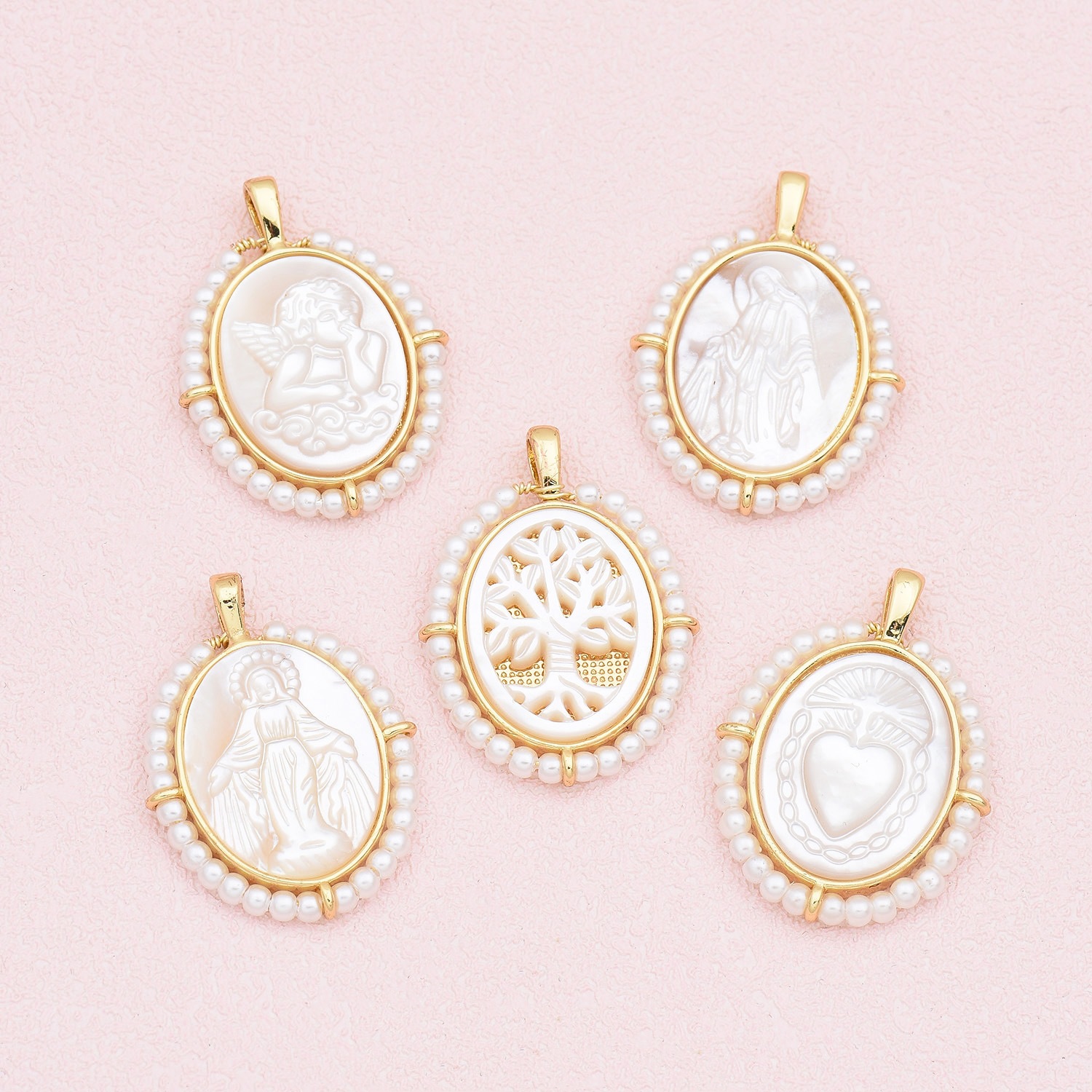 European and American New Hot-Selling Retro Religious Accessories Necklace Copper Shell Millet Beads Virgin Mary Pendant Personalized Necklace