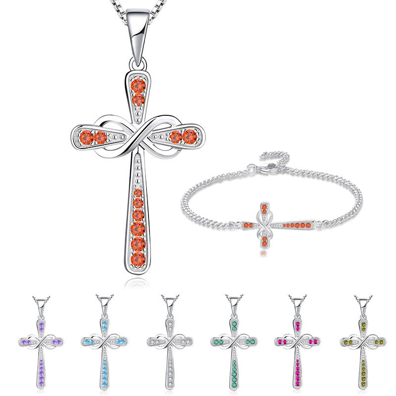 Cross-border Hot-selling Eternal Infinite Love Eight-character Necklace Women's December birthday stone Pendant Cross Zircon Necklace