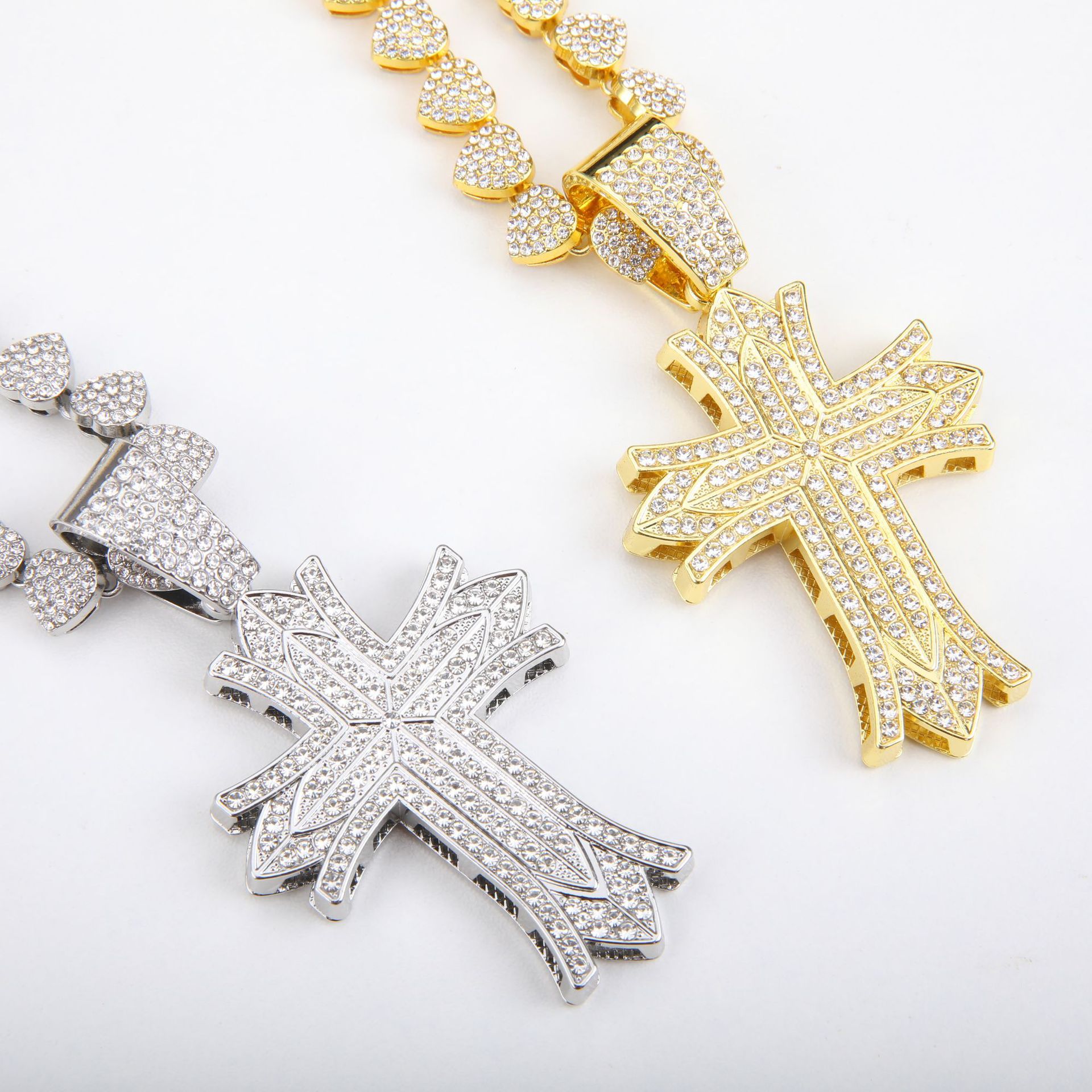 European and American Street Popular Hip Hop Jewelry Religious Cross Pendant Full Diamond Cuban Chain Necklace suit in stock