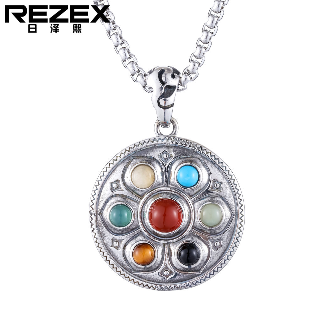 P0144-NK13 Diamond pestle Lotus titanium steel pendant necklace personality fashion retro do old Xizang ornaments necklace