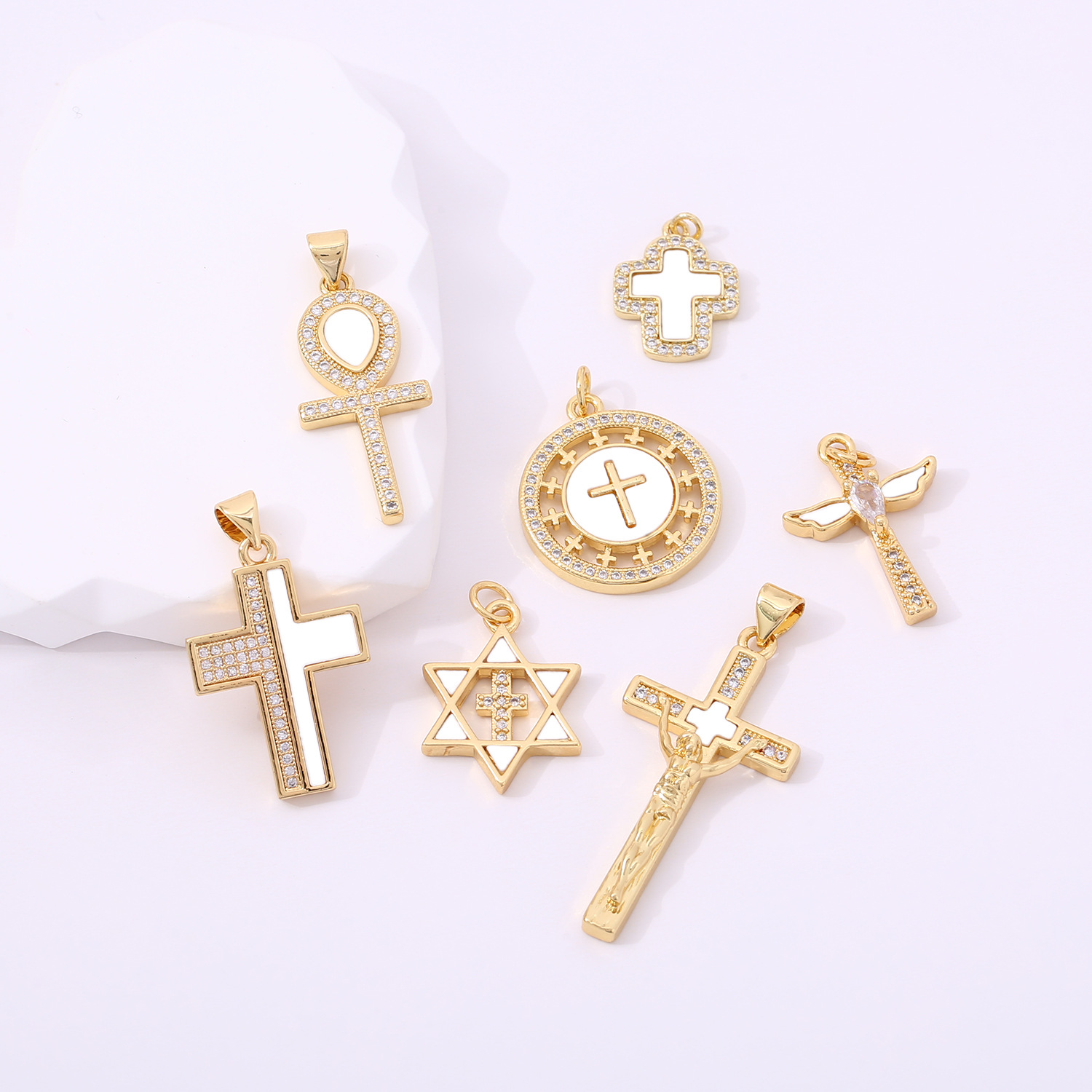 European and American Cross-Border New Shell Religious Madonna Cross Copper Gold-Plated Zircon Pendant Single Pendant Necklace Women's Accessories