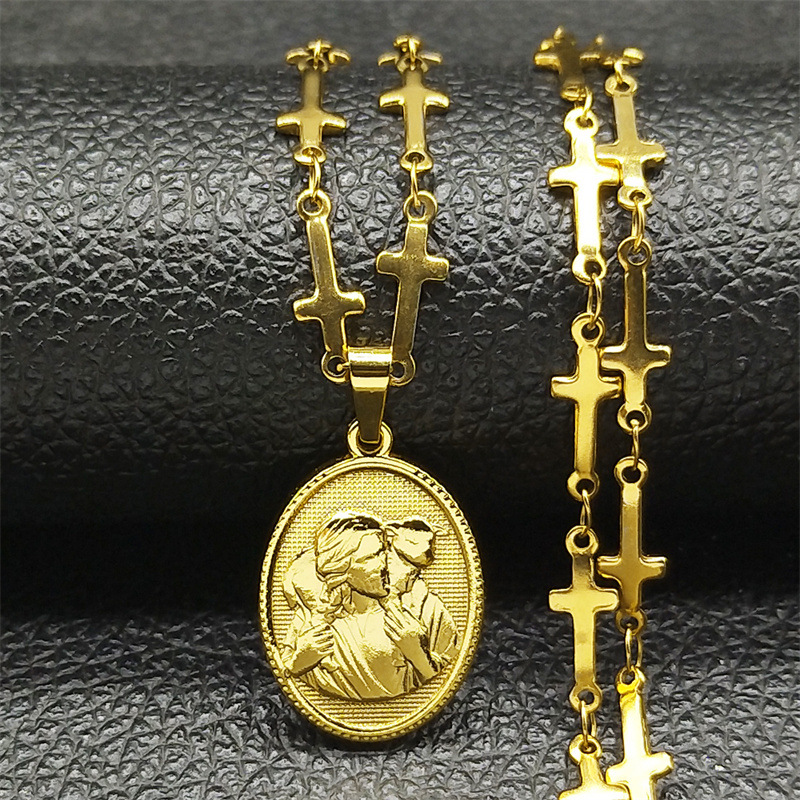 Cross-border new fashion Joker stainless steel necklace European and American personality religious titanium steel pendant 18k gold jewelry accessories